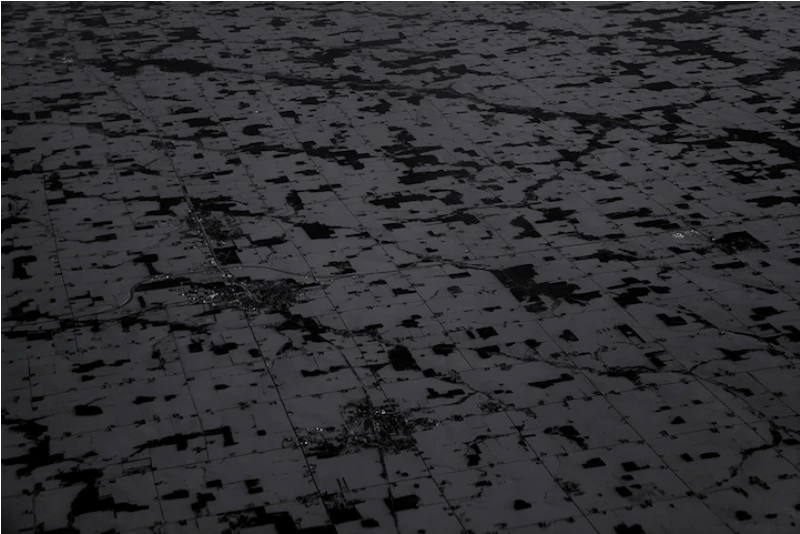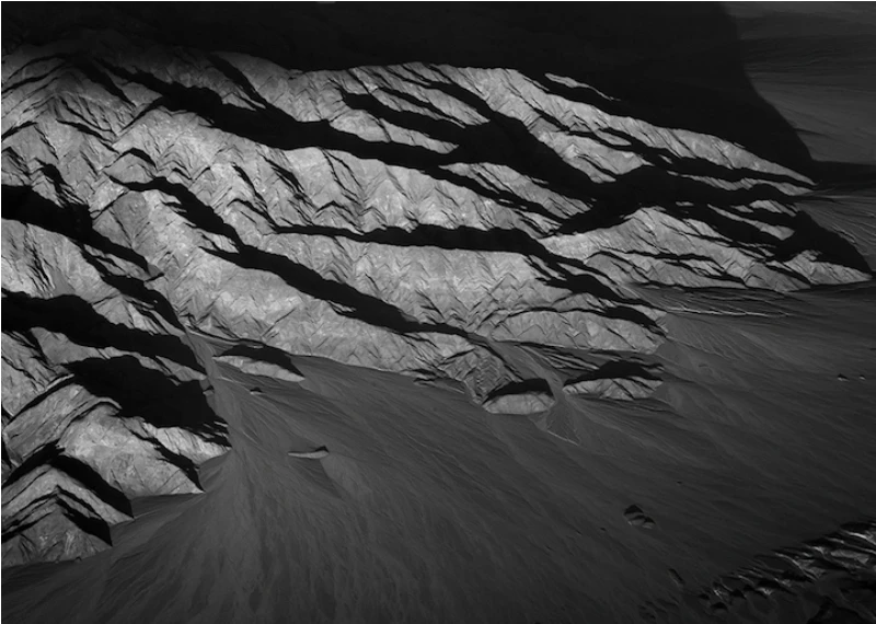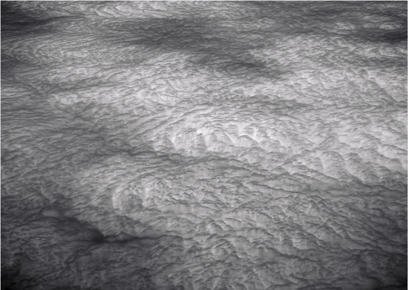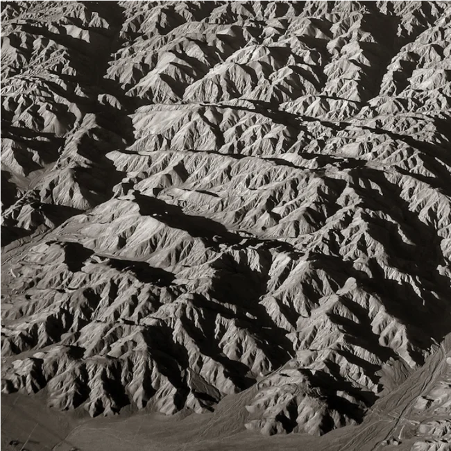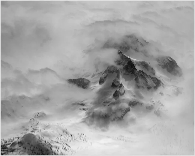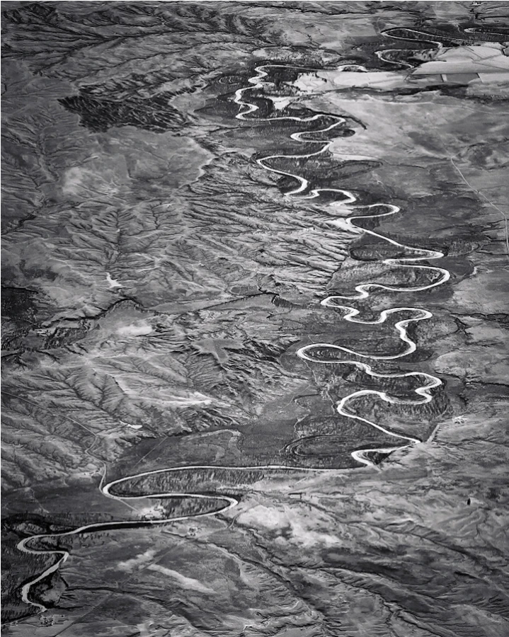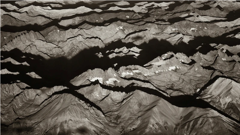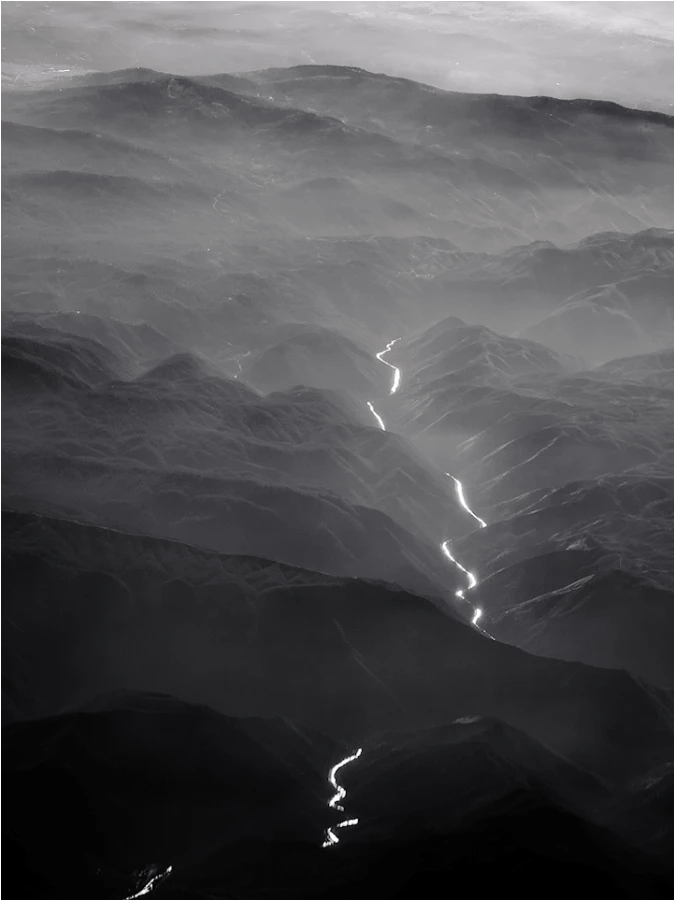 Иногда с высоты наша земля кажется абстрактной картиной, заполненной светом, тенями и геометрическими формами. Художник Люк Баскуин создал серию черно-белых фотографий с высоты птичьего полета под названием «В воздухе», в которой фотографии гор и долин в Северной Америке превратились в текстурные узоры линий, заснеженные поля и реки, извивающиеся, словно разливы белой краски.