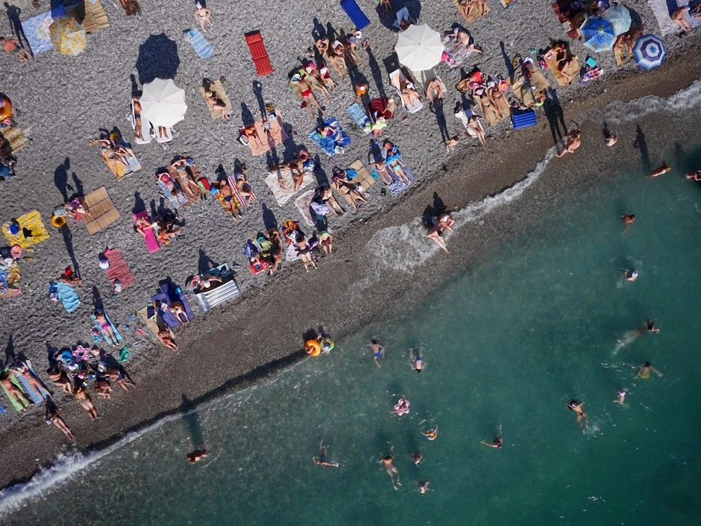 По словам фотографа, обычно он старается не снимать в местах, где есть много людей. Но на пляже шла такая бойкая торговля, что никто даже не обратил внимания на шум, издаваемый беспилотником. (Фото: Amos Chapple)