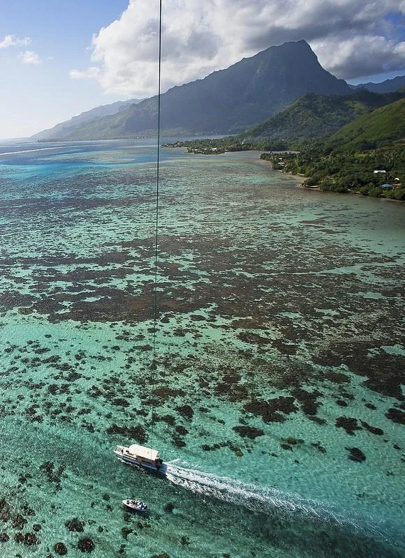 Эти фотографии были сделаны с помощью фотоаппарата с дистанционным управлением, прикрепленного к воздушному змею. Автор этих снимков — Пьерь Лесаж – фотограф и любитель ветра и воздушных змеев, решил запечатлеть красоты Французской Полинейзии и острова Пасхи.