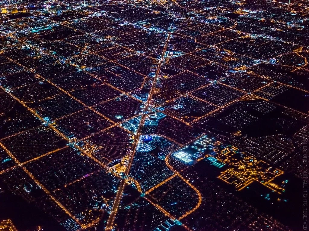 Фотограф обращает внимание зрителей на очень простое расположение городских улиц в Лас-Вегасе.