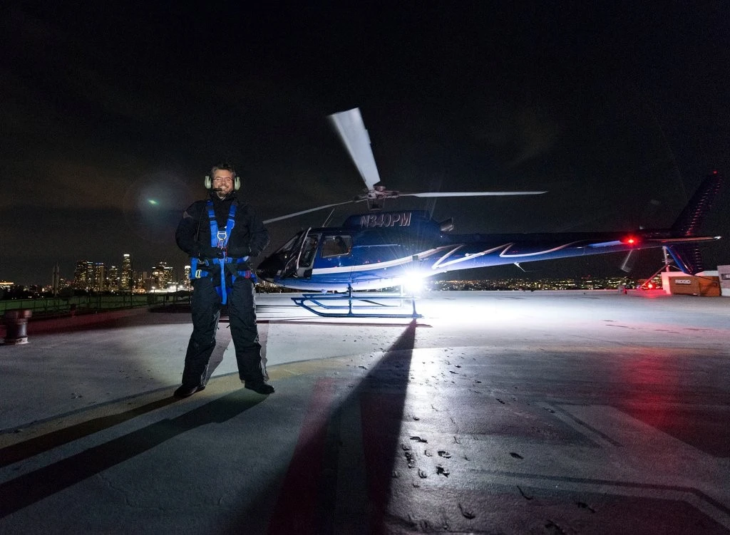 Фотограф Винсент Лафорет готовится к очередному полету на высоте более двух километров над очередным ночным городом.