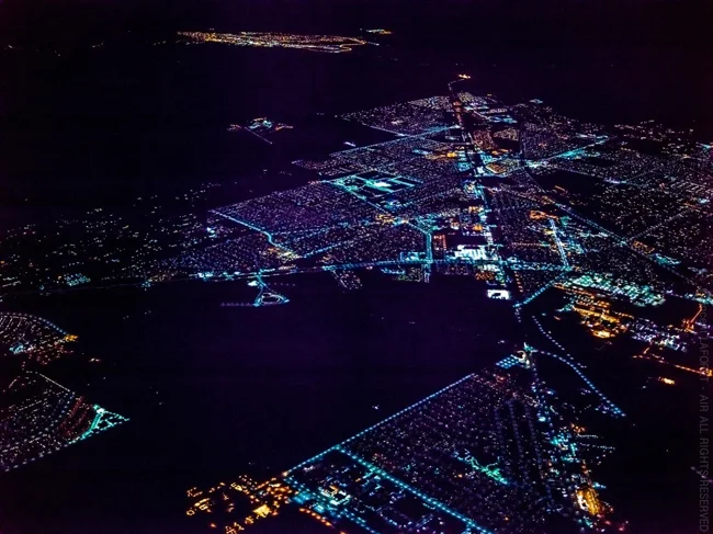 С высоты в Городе греха не видны казино и игорные дома, а только изобилие цветов и фигур в темноте.