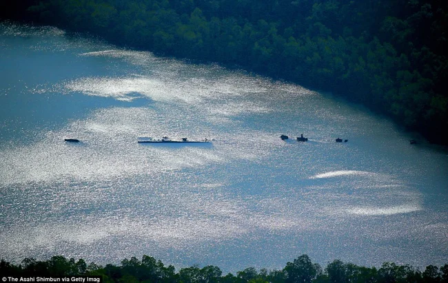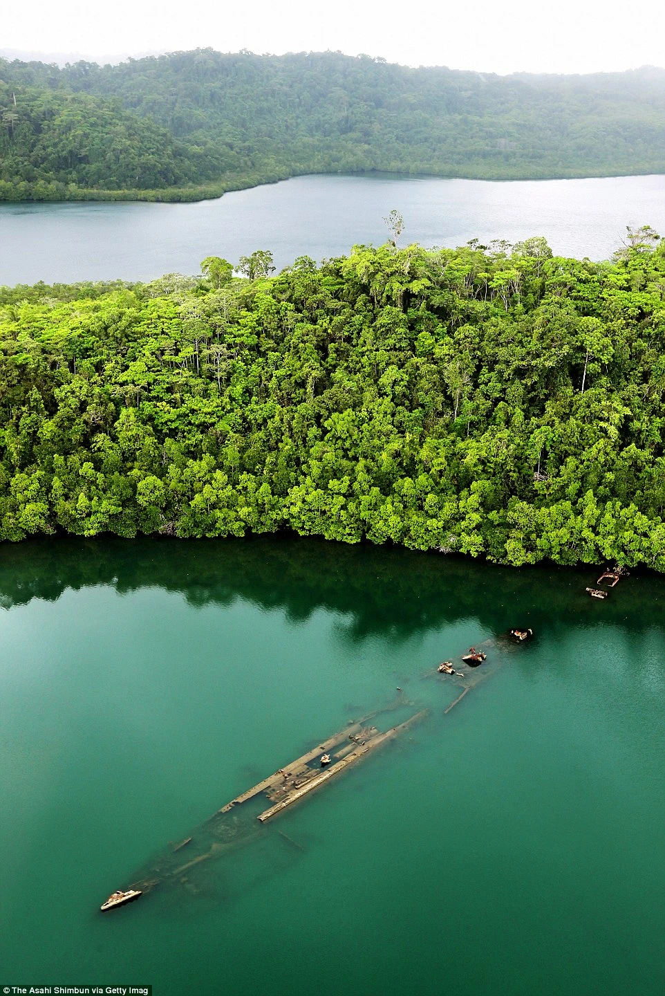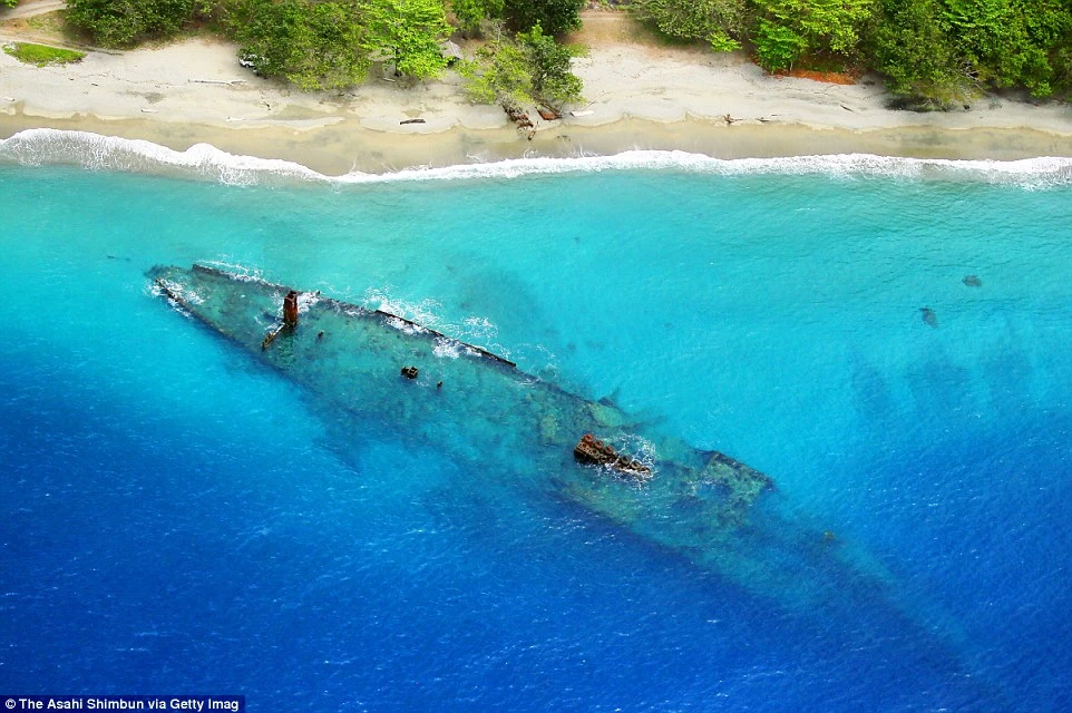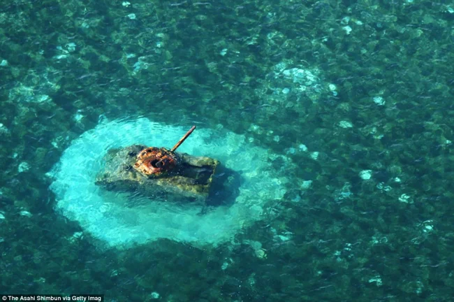 Вид с высоты на затопленный японский миноносец «Кикузуки».