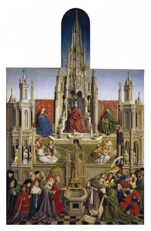 В 1432 художник завершил свое самое значительное произведение, ознаменовавшее наступление новой эпохи в живописи Нидерландов и всей Европы к северу от Альп, — монументальный многочастный алтарь для одной из капелл собора Св. Бавона в Генте. В истории мирового искусства он известен как Гентский алтарь. На 26 створках художник в необычайно убедительной форме воплотил современные ему представления о мироздании; божественное и человеческое начала сливаются здесь в нерасторжимое гармоническое единство.