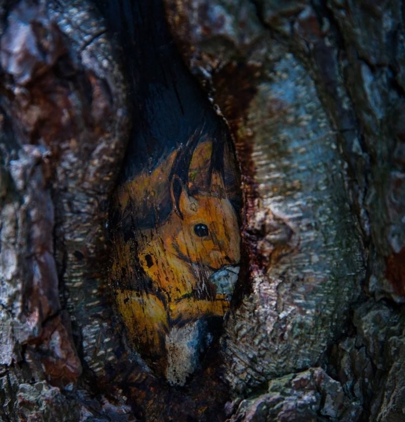 Под акриловыми красками «раны» дерева консервируются и затягиваются.