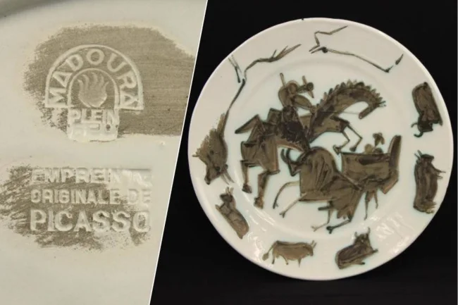 Примерно три недели назад внимание работников привлек текст на изделии — Empreinte originale de Picasso. Из-за этого провели экспертизу, которая подтвердила причастность Пикассо к работе. После этого тарелку выставили на аукцион, где ее приобрели за 12,6 тысяч евро.