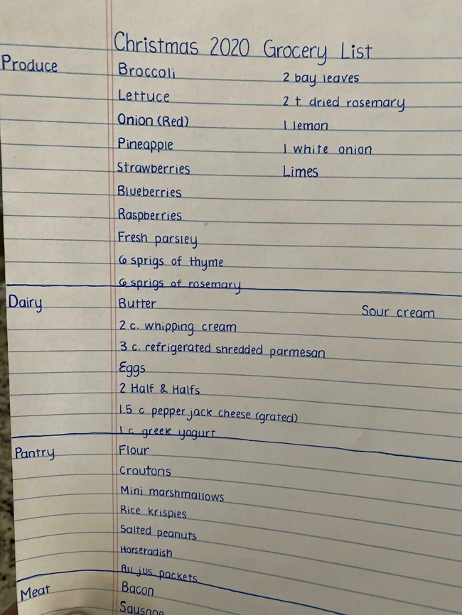 12. Моя племянница составила список покупок