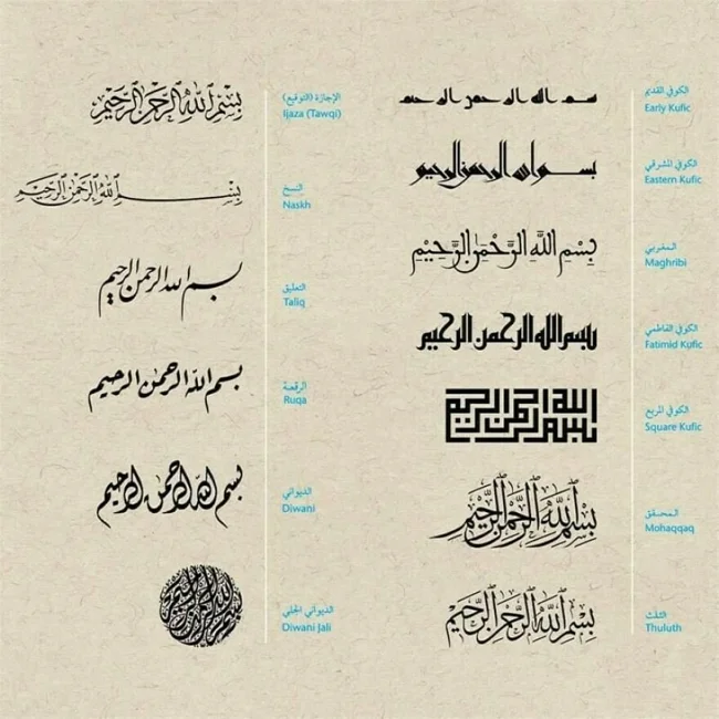 7. «Во имя Аллаха Всемилостивейшего» в 13 стилях арабского письма
