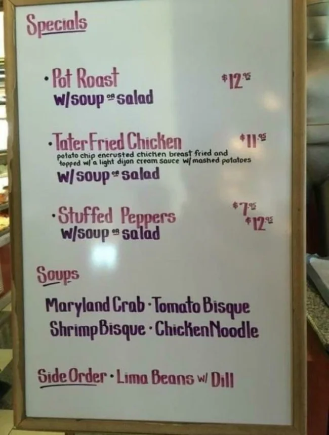 17. Меню ресторана, в котором нет изъянов