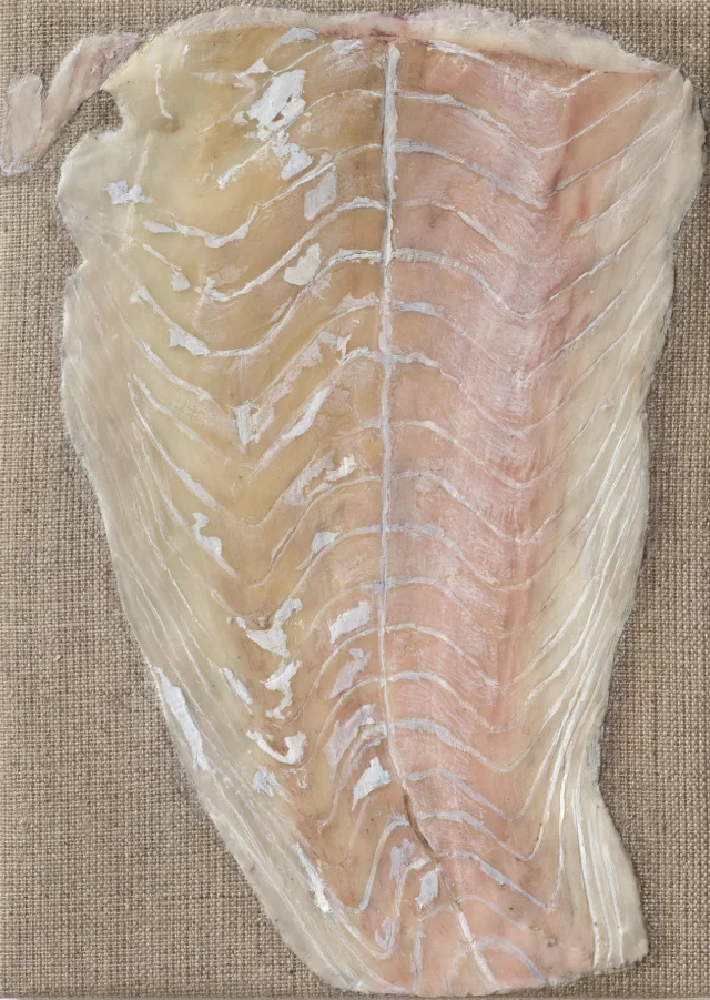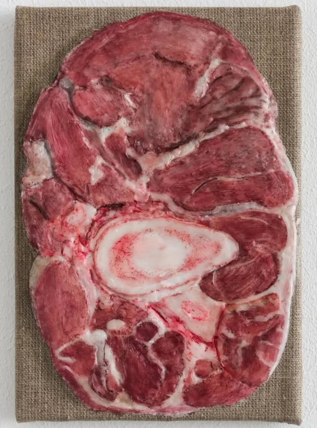 Картины Элен Апель очень просты по своей сути. Зачастую это изображения обычных предметов или вещей в натуральную величину, но написанные с потрясающей точностью. Необработанное льняное полотно только усиливает ощущение, что перед нами не плоское изображение, а настоящий объект. Для своих картин Элен Апель использует разные техники, подбирая их в зависимости от изображаемого объекта. Например, для мяса она выбирает воск: он хорошо передаёт плотность и блеск. Для луж - сильно разбавленный акрил и акварель.