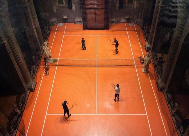 An artist placed a tennis court in a not quite ordinary place (5 photos)