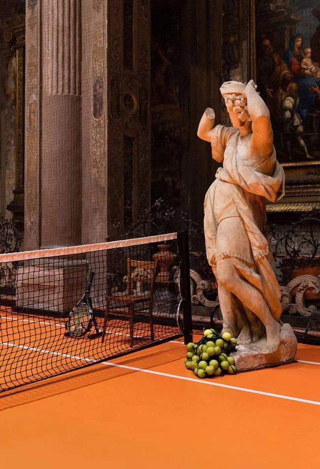 Artist Asad Raza has installed a temporary tennis court inside a dilapidated 16th-century church in Milan. He believes the meditative atmosphere of the frescoes will help players relax and play more effectively.