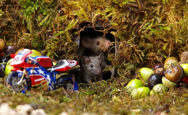 Когда фотограф Саймон Делл заметил мышек, бегающих по его саду, он не стал заводить кота или готовить ловушки, а достал инструменты и сделал для маленьких гостей миниатюрную деревню. В итоге благодарные мышки стали для него отличными и очень милыми моделями.