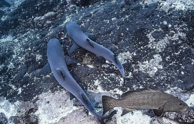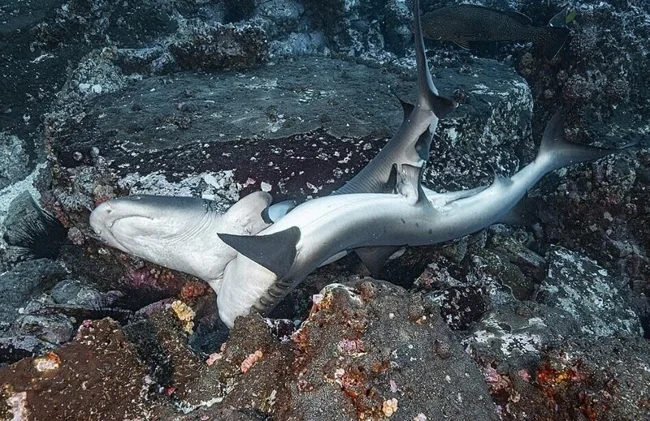 На высоте: пара белоперых рифовых акул уплыла вместе после спаривания.