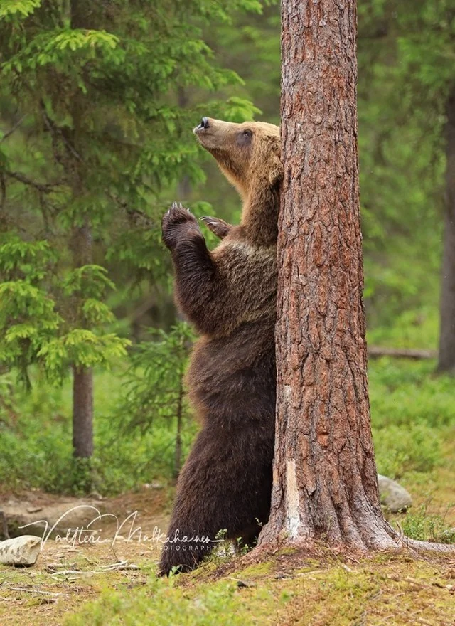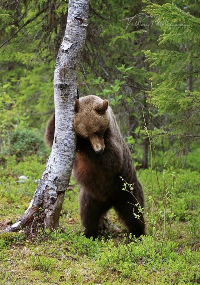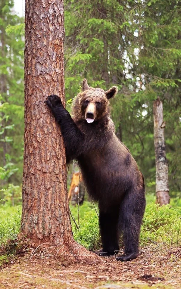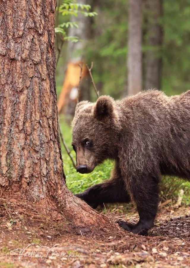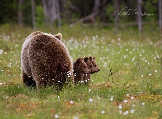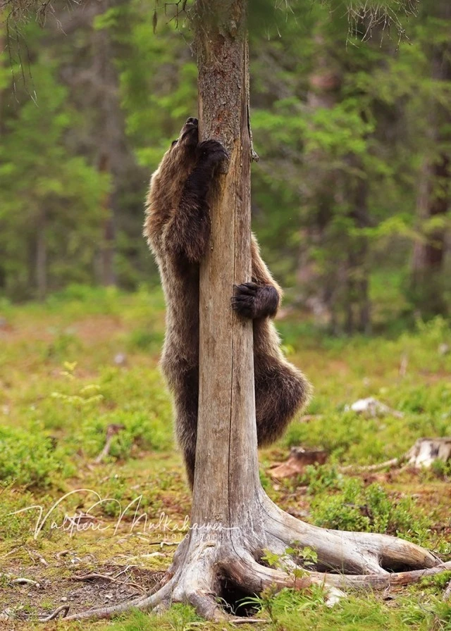 Валттери Мулкахайнен (Valtteri Mulkahainen) – учитель физкультуры из Соткамо, Финляндия, а ещё – фотограф дикой природы. Его фотоохота проходит в таёжных лесах, где можно из укрытия вести терпеливое наблюдение за бурыми медведями. Иногда удача улыбается, и снимки получаются по-настоящему удивительные. Однажды перед фотографом оказались трое медвежат, которые стояли на задних лапах и, будто, водили хоровод.