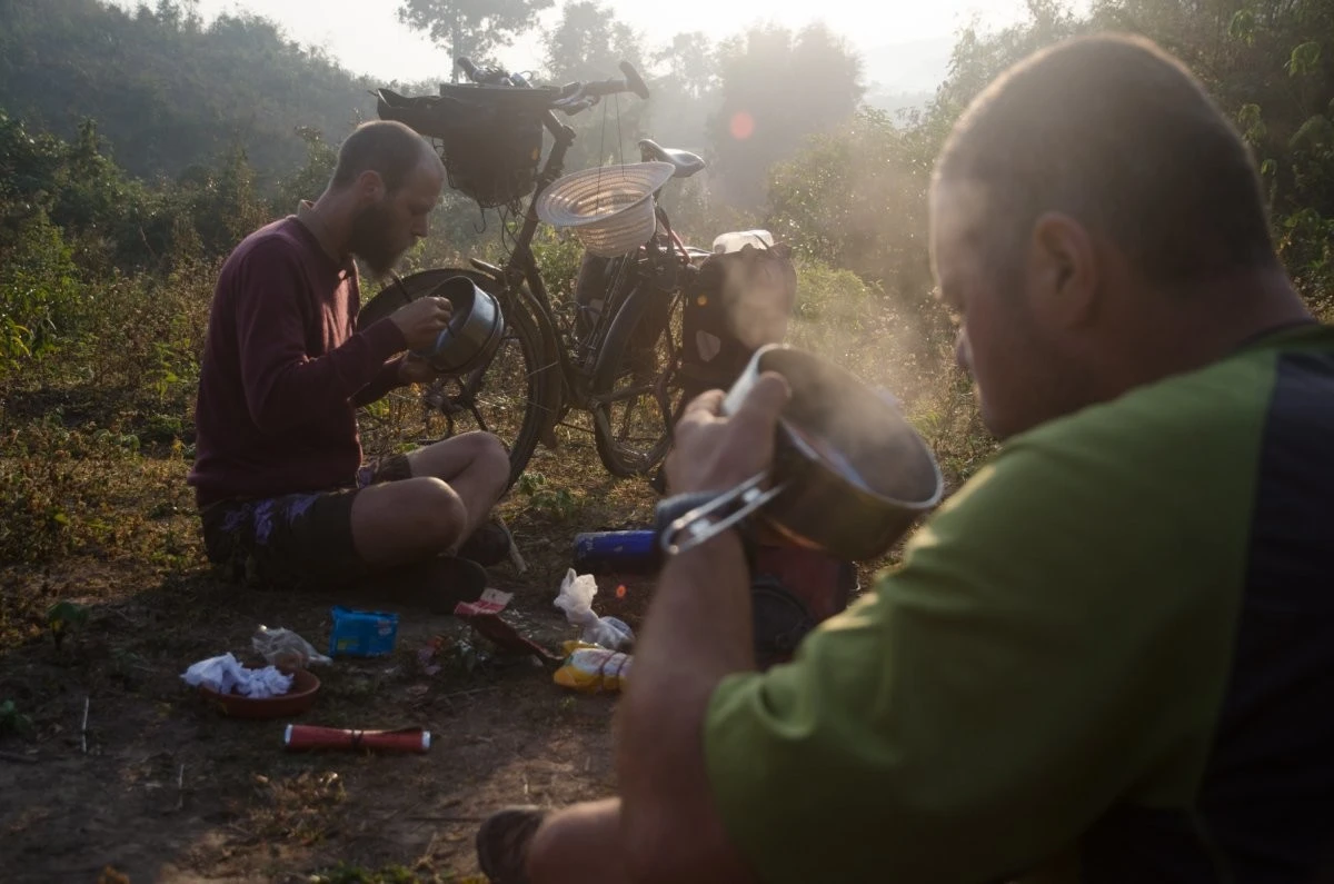 . Они сообща разбили лагерь и с удовольствием делились историями в лаосских джунглях.