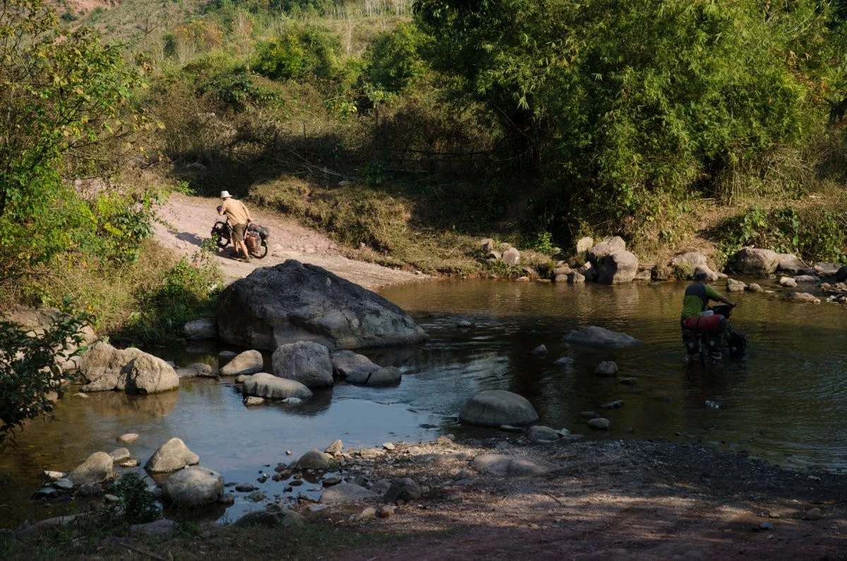 Леса в Лаосе оживлённые, но работники посоветовали не отклоняться от дороги, чтобы не напороться на мину, оставшуюся от гражданской войны.