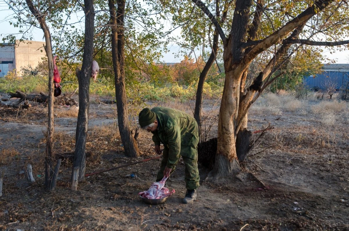 Случайно путешественник забрёл на луковую плантацию, где этот человек разделывал барана. Он со своей семьёй пригласил велосипедиста отобедать ягнёнком с чаем и водкой под рассказы об охоте в степи