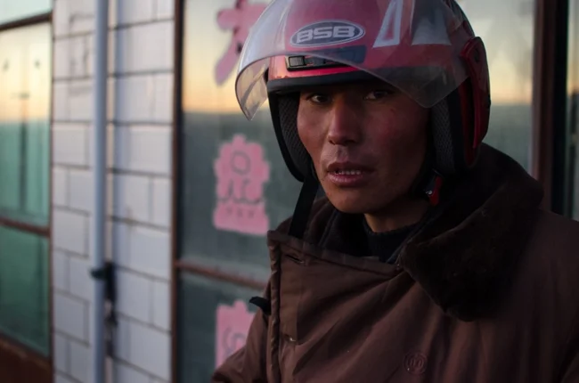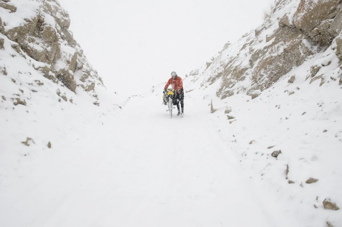 Неумолимые холода настигли велосипедиста у западной границы Китая.