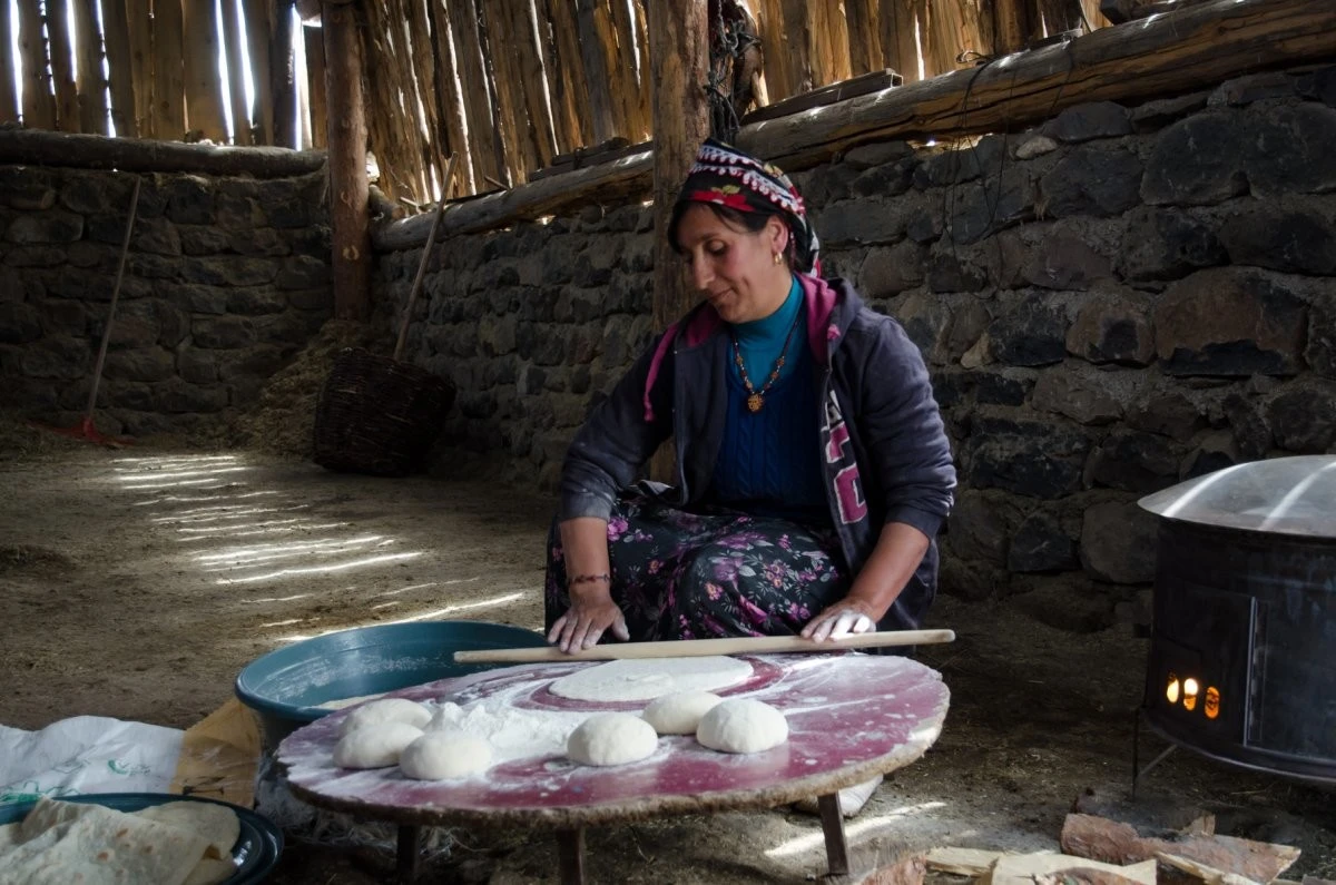 Высоко в Анатолийском плато. Женщина раскатывает тесто и готовит ужин. Тем временем мужчины в семье ухаживают за скотом.