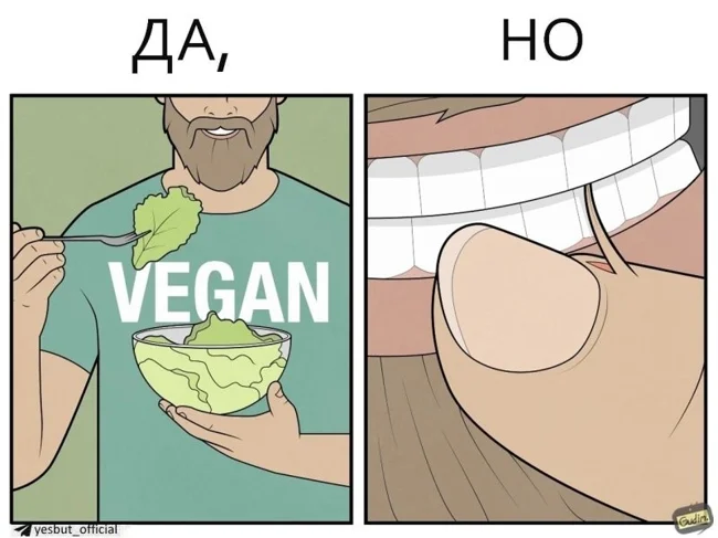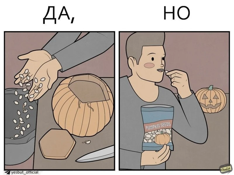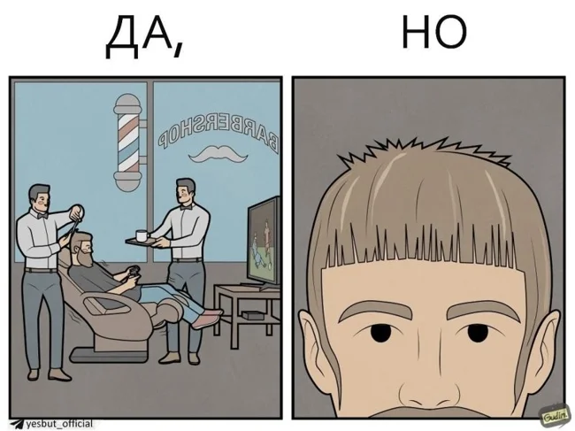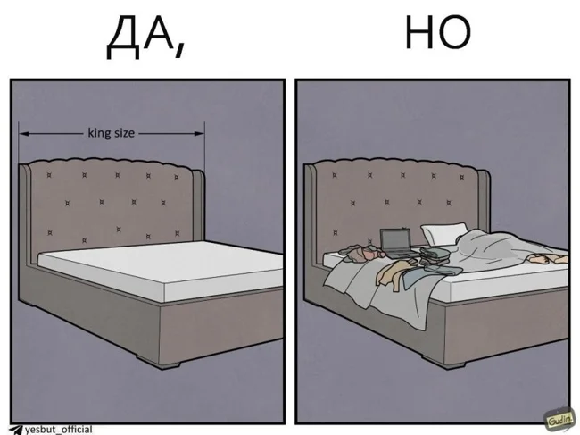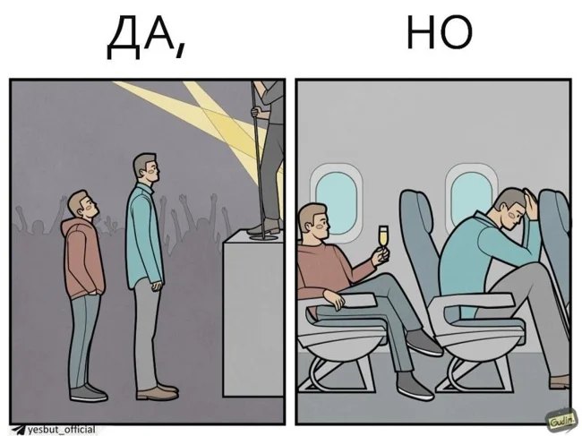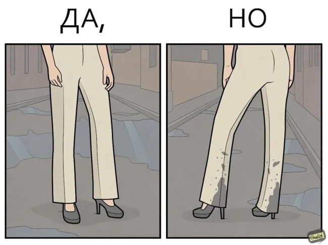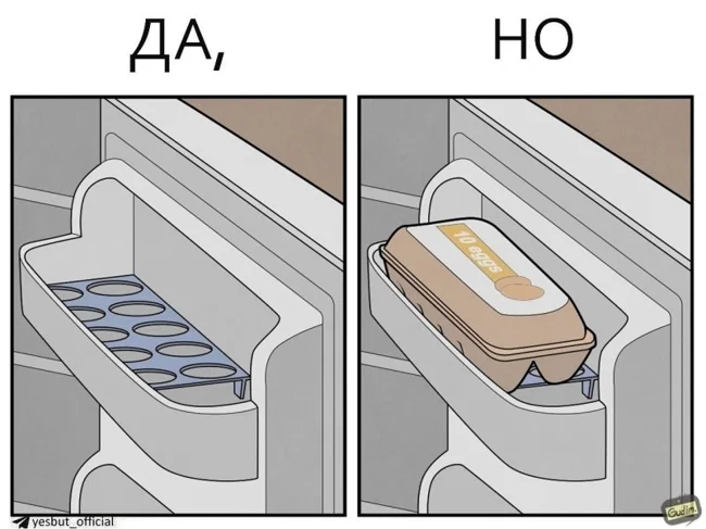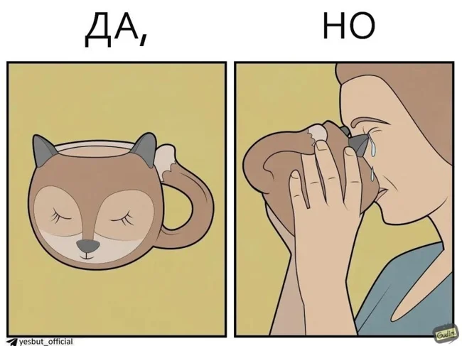 "Да, Но" - серия комиксов от автора Гудим, который показывает, что у реальности есть две стороны. Посмотреть на одну и ту же ситуацию всегда можно с разных ракурсов. Даже обычный поход в магазин или покупка наушников могут таить в себе то самое "Но".
