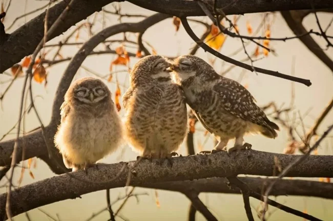 Победитель в категории «Юный фотограф Nikon» (до 16 лет)-«Целующиеся совята», Сартхак Ранганадхан (Индия).
